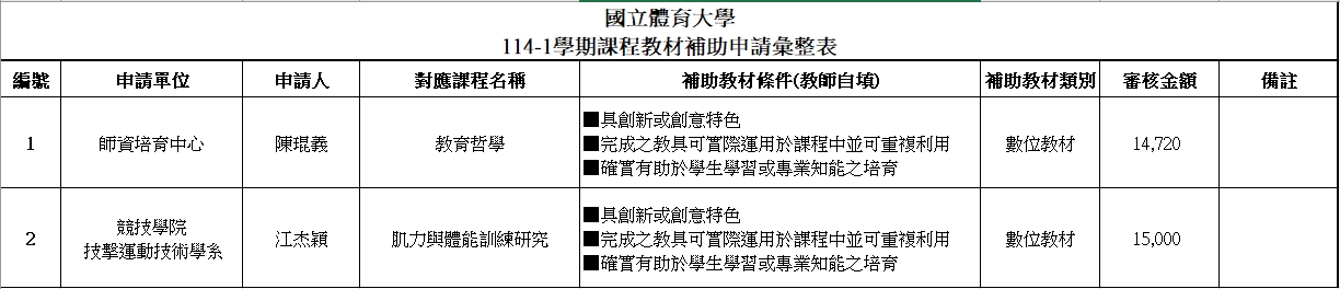請獲補助老師於114年12月5日(五)前完成課程教材補助成果報告書送至行政大樓5樓教學業務發展組,並將成果報告書電子檔傳送至業務承辦人信箱(
